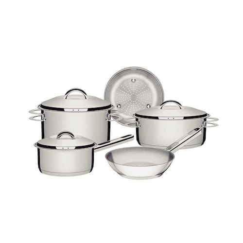 Sua cozinha vai ganhar ajudantes diferenciados com o Jogo de Panelas Solar 5 Peças Tramontina em Aço Inox com Fundo Triplo e Tampas de Inox.