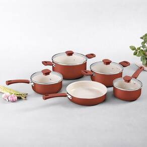 O jogo de panelas Tramontina Veronese em alumínio reciclado com revestimento interno cerâmico e externo siliconado argila 5 peças combina leveza, desempenho e um visual contemporâneo para a cozinha. A fabricação em alumínio reciclado favorece o aquecimento uniforme, enquanto o revestimento cerâmico facilita o preparo dos alimentos no dia a dia. O acabamento siliconado em tom argila acrescenta personalidade ao ambiente, trazendo um estilo moderno e acolhedor. Um conjunto prático e versátil, ideal para acompanhar diferentes rotinas e receitas.