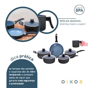 "conheça o jogo de panelas 6 pçs antiaderentes de cerâmica da coleção base da oikos!