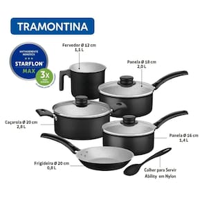 Jogo De Panelas 6 Peças Turim Preta Antiaderente Tramontina