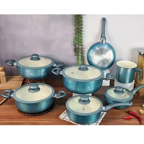 Hoje em dia, seja por lazer ou por necessidade, todos nós nos aventuramos na cozinha, não é mesmo? E para que tudo saia como desejamos, precisamos sempre contar com utensílios corretos e de qualidade para cada ocasião. Para preparar seus alimentos de maneira simples e proveitosa, nada melhor do que um belo jogo de panelas. Por isso a Casambiente apresenta o jogo de panelas Genebra. É composto por 7 peças. Sua cor azul metalizado traz um visual moderno e ao mesmo tempo sofisticado, que deixarão seu ambiente ainda mais bonito e elegante. Equipadas com fundo de indução revestimento interno cerâmico e feito em alumínio, este conjunto de panelas foi feito para os amantes da cozinha gourmet.