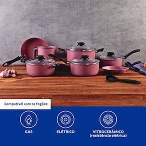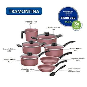 Jogo De Panelas 7 Peças Rosa Linz Antiaderente e Colher Tramontina
