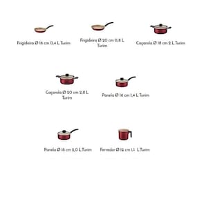 Jogo de Panelas 7Pçs Turim Verm Antiaderente Tramontina Leve o jogo de panelas Tramontina Turim em alumínio com revestimento interno e externo em antiaderente Starflon Max vermelho 7 peças para o seu dia a dia e garanta maior praticidade para o preparo das suas refeições. Produzido em alumínio com revestimento interno e externo em antiaderente Starflon Max, as peças garantem o cozimento rápido e uniforme dos alimentos, evitam que eles grudem em sua superfície, são muito fáceis de limpar e mais duráveis. Os cabos e alças são em material antitérmico e não aquecem, o que garante um manuseio muito mais seguro e confortável. Um jogo prático, que pode ir à máquina de lavar louças e que acompanha tampas de vidro temperado com bordas de aço inox que facilitam o preparo das suas receitas Conteúdo: 1- Frigideira16cm -0,4L 1- Frigideira 20cm -0,8L 1- Caçarola 18cm -2L 1- Caçarola 20cm -2,8L 1- Panela 16cm -1,4L 1- Panela 18cm -2L 1 -Fervedor 12cm -1,1L Jogo Contém: 7 Peças Marca: Não Informado Ean: 7897794716995