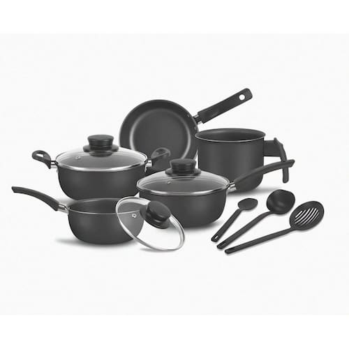 01- Panela de 16cm de diâmetro 01- Panela de 18cm 01- Caçarola de 18cm 01- Fervedor de 14cm 01- frigideira de 20cm