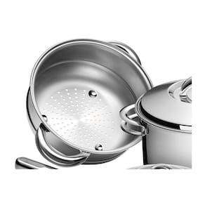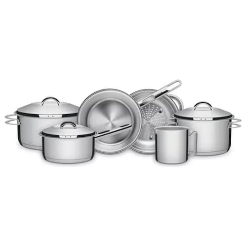 Jogo de Panelas Aço Inox 6 Pçs Solar Tramontina Práticas e duráveis, as seis peças são produzidas totalmente em aço inox, que mantém os alimentos saudáveis já que o material não solta resíduos. Possuem fundo triplo aço inox + alumínio + aço inox , característica que distribui o calor de forma uniforme, proporcionando um cozimento mais rápido e deixando os alimentos aquecidos por mais tempo, além de economizar mais energia. São peças versáteis que podem ir ao forno para gratinar ou finalizar pratos na temperatura máxima de 260C e ser utilizadas em diferentes tipos de fogões. O fervedor não é indicado para o fogão à indução. Possuem tampa com encaixe perfeito e saída de vapor. São ainda muito estilosas. O acabamento em alto brilho faz delas as melhores escolhas para uma cozinha mais bonita. São fáceis de limpar devido ao desenho sem cantos, além de poderem ir à máquina de lavar louças diariamente. Especificações: Marca: Tramontina Modelo: Jogo de panelas 6 peças Linha: Solar Quantidade de Peças: 06 Material: Aço Inox Conteúdo: 1- Panela 16cm -1,4L 1- Frigideira 20cm 2,2L 1- Cozi-Vapore 20cm 3,6L 1- Caçarola Funda 20cm 3,6L 1- Caçarola Rasa 24cm 4,7 L 1- Fervedor 12cm 1,4L : 3 meses 7891116061589 Marca: Não Informado Ean: 7898689497647