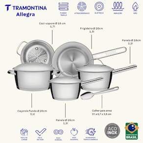 Jogo Panelas Allegra Aço Inox 5 Peças e Colher Tramontina