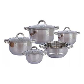 Jogo com 23 peças. Fabricação alemã com certificado de garantia mundial. As peças são em aço cirúrgico com tampa de vidro temperado, fundo em 9 camadas com revestimento cerâmico e antiaderente. Todas as tampas são equipadas com termômetro / termostato. Aço inoxidável 18/10. Relação das peças: 1 Caçarola 6,5 litros medindo 24cmX14cm com tampa de vidro temperado 1 Caçarola 3,0 litros medindo 20cmX10cm com tampa de vidro temperado 1 Caçarola 1,6 litros medindo 16cmX8cm com tampa de vidro temperado 1 Frigideira 3,05 litros medindo 24cmX6,5cm com tampa de vidro temperado 1 Panela 1,6 litros medindo 16cmX9cm com tampa de vidro temperado 1 Panela vaporizadora medindo 20cmX10cm sem tampa 1 Fritadeira medindo 18cm 1 Bacia para misturas medindo 20cmX6cm com tampa plástica 2 Suporte de panelas em bakelite 1 Conjunto de utensílios de cozinha com 6 peças em nylon 1 Botão de sucção Peso aproximado do conjunto é de 11,5Kgs. Marca: Sa, Songle, Nakazaki Ou Siga It-Blue