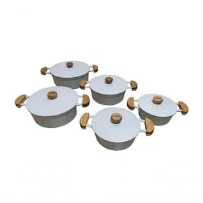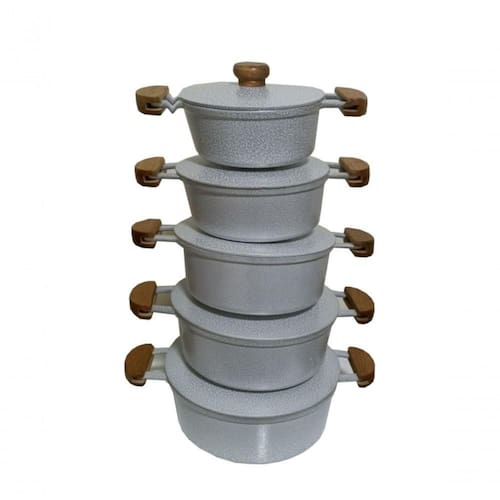 Mais luxo e requinte para sua cozinha, jogo com 5 peças de alumínio fundido com tampa pesada na linda cor Branca Craqueada, são 3 camadas de tinta e verniz para maior brilho e durabilidade.