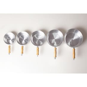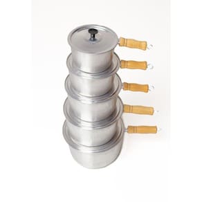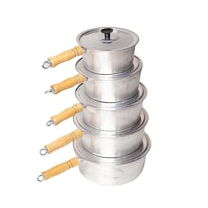 Jogo de 5 panelas fundido batido e polido grossas direto da fábrica.Características:- Tipo: Jogo de Panelas 5 Peças- Material: Alumínio Fundido Batido- Espessura da Panela: Grossa de 3mm à 5mm dá menor pra maior, recuse imitações, à vários outros anúncios com panelas bem mais finas para economizar no material.- Material dos Cabos: Madeira Marfim Envernizados- Acompanha Tampa: Sim- Material das Tampas: Alumínio Leve- Material do Pegador da tampa: Baquelite um material especial que resiste a altas temperaturas sem esquentar- Indicado para fogão: Gás, Lenha, etc..- Super Resistentes- Excelente Durabilidade- Não Quebra- Não Enferruja-não AmassamO jogo contém:Panela Numero 16 - 7,5cm de altura, diâmetro 17cm, capacidade 1,200 litrosPanela Numero 18 - 8,5cm de altura, diâmetro 19cm, capacidade 1,700 litrosPanela numero 20 - 9cm de altura, diâmetro 21cm, capacidade 2,100 litrosPanela Numero 22 - 9cm de altura, diâmetro 23cm, capacidade 2,600 litrosPanela Numero 24 - 9,5cm de altura, diâmetro 25.5cm, capacidade 3,800 litrosAcompanha 5 tampas, de alumínio leve, de acordo a numeração de cada uma.