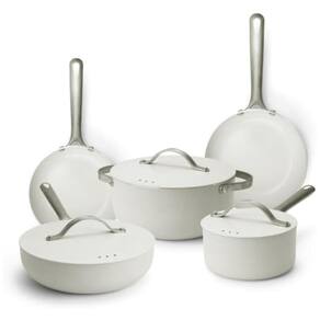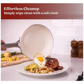 A superfície antiaderente de cerâmica reforçada com partículas de diamante do Conjunto de Panelas Alva Mobi dura 3 vezes mais do que as panelas de cerâmica comuns, resistindo a riscos e evitando descamação. Com melhor liberação de alimentos do que as concorrentes, a limpeza é fácil com água e sabão. As panelas possuem base de alumínio de calibre pesado com placa de indução de aço magnético, proporcionando aquecimento uniforme em todas as superfícies. Este conjunto completo em Canoli Cream inclui frigideiras, caçarolas e panelas, cobrindo 95% das tarefas na cozinha. As alças ergonômicas garantem conforto durante o uso. Livre de toxinas e seguro para lava-louças, o conjunto Alva Mobi oferece desempenho sem comprometer o meio ambiente. Prepare refeições perfeitamente antiaderentes sem a necessidade de pré-aquecimento, enquanto desfruta da facilidade de limpeza e durabilidade.