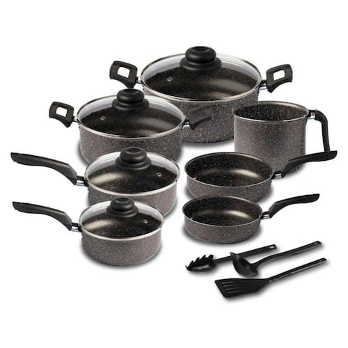 Jogo De Panelas Antiaderente 10 Pçs Colori Stone Tampa Vidro