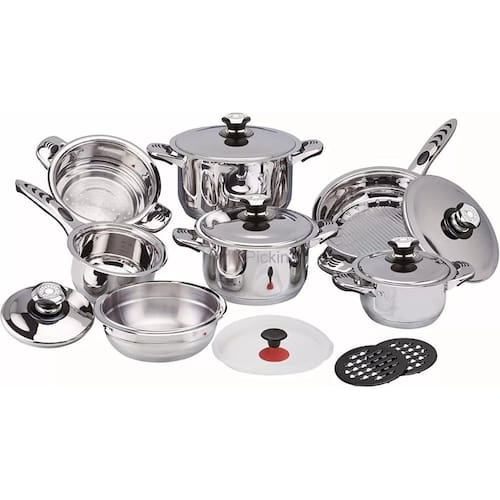 Jogo de panelas antiaderente alemã aço cirúrgico 23 peças apenas para fogão de indução melhor panela do mundo, peças em açõ cirurgico alemã. Certificado de garantia mundial, utilizado pelos melhores chefes de cozinha do mundo. Tem garantia e acabou de chegar no brasil. Oportunidade de compra agora pra voce que quer ter uma comida de boa qualidade com a melhor panela do mundo. Enviamos para todo brasil. 23 peças11 camadas de cerâmicaantiaderenteaço cirúrgico 18/10 gramatura termostato garantia de 1 ano pelo fabricanteproduto 100% jogo de panelas 12 peças royal01 - 1 caçarola 6. 5 litros medindo 24cmx14cm com tampa02 - 1 caçarola 3. 0 litros medindo 20cmx10cm com tampa03 - 1 caçarola 1. 6 litros medindo 16cmx08cm com tampa 04 - 1 frigideira 3. 0 litros medindo 24cmx6. 5cm com tampa 05 - 1 panela 1. 6 litros medindo 16cmx09cm com tampa06 - 1 panela vaporizadora medindo 20cmx10cm07 - 1 fritadeira medindo 18cm mais, 11 utencilios para cozinha08 - 02 bakelite suporte de panelas09 - 01 conjuto de útensilios nylon 6 peças 10 - 1 botão sucção11 - 1 livro de receita em 3 linguas alemão,russo e inglês 12 - cartão de certificação de fábrica tampas com termometro. Caixa totalmente lacrada. Garantia de 12 meses contra defeitos de fabricaçãopeso: 11. 2kg Marca: Sa, Songle, Nakazaki Ou Siga It-Blue
