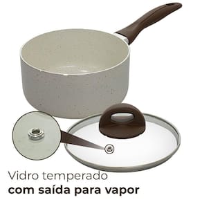 O jogo de panelas possui design inovador, produzida na cor vanilla com cabos marrons, o que com certeza é um diferencial quando estão expostas. O kit de panelas ainda acompanham 2 utensílios em silicone na mesma cor da panela, para que você possa preparar seu alimentos sem danificar seu revestimento de cerâmica antiaderente.