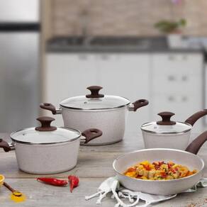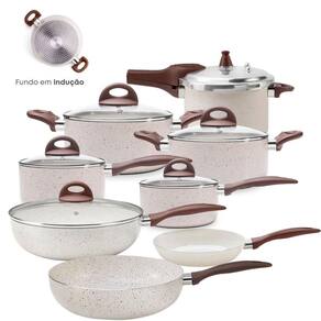 Toda cozinha precisa de uma Panela prática e que favoreça uma alimentação saudável A panela com tampa e fundo de indução da linha Granada, feita para você passar menos tempo preparando suas receitas e cozinhando de forma mais segura em todos os tipos de fogões. Com antiaderente Pro Ceramic Premium, a caçarola é resistente e livre de metais pesados e elementos químicos prejudiciais à saúde, exigindo menos uso de óleo no preparo das refeições, não deixando os alimentos grudarem, facilitando a limpeza e consumindo menos energia. Mais resistente e durável, a caçarola cozinha os alimentos por igual e rapidamente, facilita a visualização dos ingredientes sem prejudicar o cozimento, o cabo com revestimento Soft-Touch, não esquentam durante o uso e têm toque macio. Nesta versão, a panela tem otimo acabamento. Sua pintura externa é na cor Vanilla. Composição do Conjunto 1 panela Caçarola Indução Brinox 24cm Vanilla, 1 panela Caçarola Indução Brinox 20cm Vanilla, 1 panela Indução Brinox 18cm Vanilla, 1 panela Indução Brinox 16cm Vanilla, 1 frigideira Indução Brinox 20cm Vanilla, 1 frigideira WOK Indução Brinox s/Tampa 28cm Vanilla, 1 frigideira WOK Indução Brinox C/Tampa 28cm Vanilla, 1 panela de Pressao Brinox 4,2L Indução Vanilla Marca: Não Informado Ean: 7843978101361