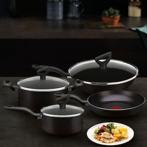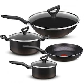 Conteudo da Embalagem: 01 Panela 18cm + 01 Cacarola 24cm + 01 Frigideira 25cm + 01 Frigideira Wok 28cm