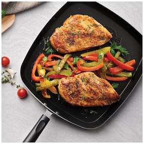 Componentes Inclusos: Frigideira, Grelha quadrada, Frigideira funda aberta, Panela de cozimento de 1 litro com tampa, Panela de cozimento de 2 litros com tampa, Panela de cozimento holandesa de 4 litros com tampa, 6 Utensílios de Nylon,