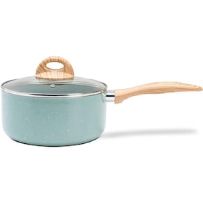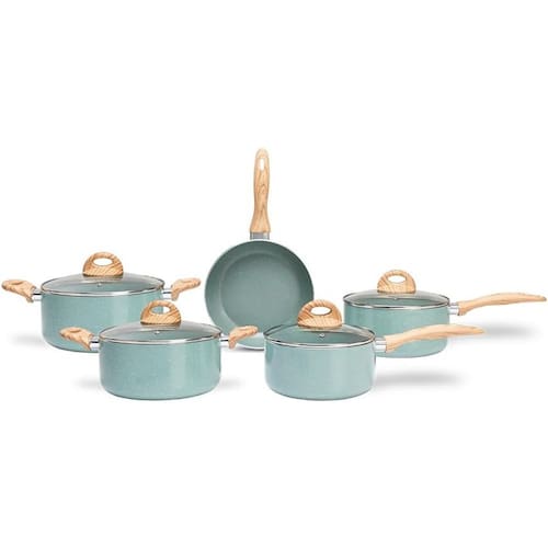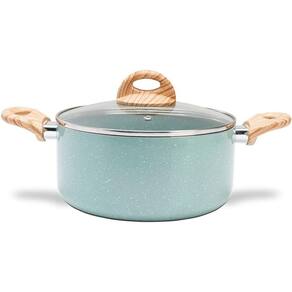 MATERIAIS: o Jogo de Panelas 5 Peças Botanika/Brinox é fabricado na cor Verde com estrutura em alumínio que cozinha por igual e mais rápido. Os cabos e alças são em baquelite soft-touch com efeito amadeirado. As tampas em vidro temperado têm saídas para o vapor. Livre de PFOA, o revestimento interno é com antiaderente Pro Ceramic e Mineral Resist de três camadas. O fundo de indução permite a utilização em todos os tipos de fogões.