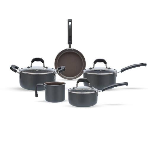 O Jogo de Panelas Brinox Antiaderente Ceramic Life 5 Peças Fine Cinza Fine Cinza possui antiaderente cerâmico Mineral Resist que não gruda, é fácil de limpar e livre de PFOA. Sua estrutura é em alumínio, que cozinha por igual e mais rápido, possui tampas de vidro temperado com saída para vapor e cabos e alças em baquelite rebitados, seguros para manusear. Com pintura externa na cor Cinza, o conjunto traz mais leveza e sofisticação para a sua cozinha. Como todas as panelas da Brinox, a linha Fine possui Classificação A no Inmetro. Este conjunto é composto por: Caçarola 20X9,5 2,7L, Panela com tampa 16X8CM 1,45L, Panela com tampa 18X9CM 2,05L, Frigideira 20X3,8CM 1L e Fervedor 12X12CM 1,2L.