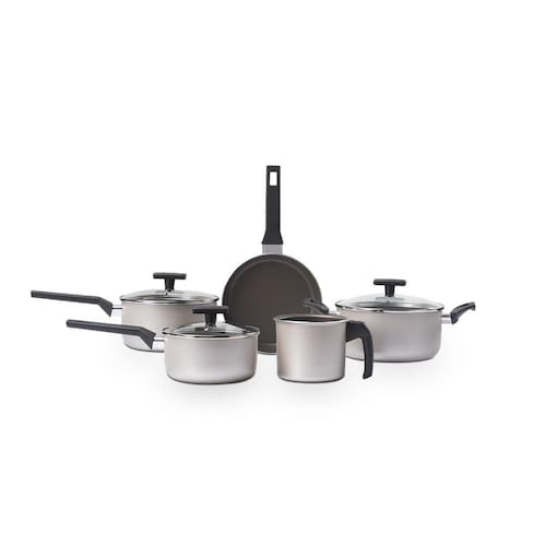 Conjunto de Panelas Brinox Ceramic Life Essence 5 Peças Tampa de Vidro Champagne