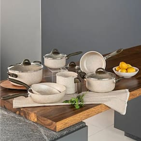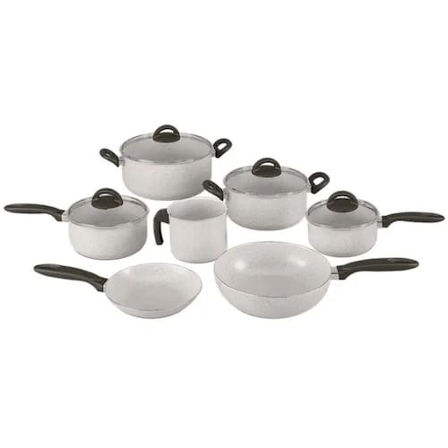Sua cor Vanilla com grânulos cinza, deixa sua cozinha muito mais moderna e da um toque de sofisticação, um conjunto de panelas que será o seu parceiro na hora de preparar suas receitas, podendo preparar até mesmo grandes refeições, já que as panelas possuem tamanhos agradáveis. A Caçarola com tampa possui 24 cm e 11,5 cm, a outra Caçarola com tampa possui 20 cm e 10 cm, a Panela com tampa 18 cm e 9 cm, a outra Panela com tampa possui 16 cm e 8 cm, o Wok possui 24 cm, a Frigideira 20 cm e 4 cm e o Fervedor possui 14 cm e 12,5 cm