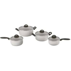 Diâmetro das panelas: Caçarola com tampa: 24 cm x 11,5 cm | Caçarola com tampa: 20 cm x 10 cm | Panela com tampa: 18 cm x 9 cm | Panela com tampa: 16 cm x 8 cm | Frigideira: 20 cm x 4 cm | Wok: 24 cm | Fervedor: 14 cm x 12,5 cm