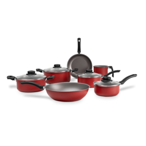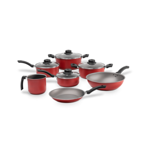 Com estrutura em alumínio que cozinha por igual e mais rápido, tampas de vidro temperado, com saída para vapor e cabos e alças de baquelite que não esquentam, o conjunto de panelas 7 peças da linha Ruby possui antiaderente pro-flon que não gruda, é fácil de limpar e livre de PFOA. Como todas as panelas da Brinox, a linha Ruby possui Classificação A no Inmetro. Disponível na cor preta, uma das cores mais versáteis e práticas para a cozinha, a linha Ruby é uma ótima opção para o dia a dia pois se encaixa bem tanto em ambientes sofisticados quanto nos mais mais simples. Esse conjunto é composto por: Caçarola com Tampa Ø 22 x 10 cm - 3,45 L, Caçarola com Tampa Ø 20 x 9 cm - 2,6 L, Panela com Tampa Ø 18 x 8 cm - 1,9 L, Panela com Tampa Ø 16 x 7 cm - 1,3 L, Wok Ø 26x8 cm - 3 L, Frigideira Ø 22 x 3,5 cm - 0,8 L, Fervedor Ø 12 x 11,5 cm.