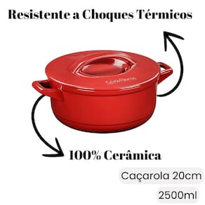 As panelas de cerâmica Ceraflame são feitas 100% em cerâmica e não contêm metais pesados ou substâncias tóxicas que podem ser encontrados em alguns outros tipos de panelas. Possuem excelente capacidade de retenção de calor, o que ajuda a manter os alimentos quentes por mais tempo. Ideal para quando você deseja servir refeições quentes à mesa. Além disso, a cerâmica é um material não poroso, o que significa que não absorve odores ou sabores dos alimentos.