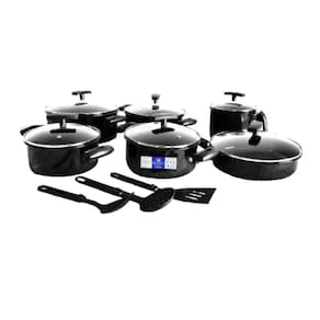 O Jogo De Panelas Royale com 6 peças e mais 3 escumadeiras é uma excelente opção para quem busca produtos de alta qualidade para cozinhar. As seis panelas são feitas em aço fundido com cerâmica e contam com tampas de vidro inquebrável.As panelas apresentam revestimento especial em vitrocerâmica, confeccionado para resistir as temperaturas e evitar contaminação por germes e bactérias. Cozinham eficientemente e mantêm o calor, economizando até 40% do gás.Características:- Cerâmica de alta qualidade- Aço Ferromagnético fundido a 850.C - Evita contaminação- Mais eficiente- Mantém o calor- Fácil limpeza- Mais saudável- Pode ser levado ao freezer, lava louças, fogão a gás, elétrico, por indução e à lenhaEspecificações técnicasMarca: RoyaleModelo: Conjunto 6 Panelas + 3 utensíliosAmbiente: CozinhaMaterial: Aço / CerâmicaCor: PretoCabo: BaqueliteQuantidade de panelas: 6Quantidade de utensílios: 3Garantia: Defeito de FabricaçãoPeso: 5kgItens inclusos01 Caçarola com tampa de vidro 25cm01 Caçarola com tampa de vidro 22cm01 Frigideira com tampa de vidro 24cm01 Panela com tampa de vidro 18cm01 Panela com tampa de vidro 20cm01 Leiteira com tampa de vidro 16cm03 Utensílios Escumadeiras