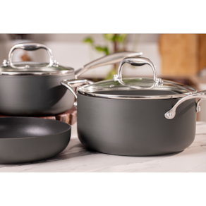 Cozinhe seus alimentos em menos tempo e prepare suas receitas em qualquer tipo de fogão, com o exclusivo fundo de indução do conjunto de panelas 4 peças da linha Diamond da Brinox. Com estrutura em alumínio que cozinha por igual e mais rápido, tampas de vidro temperado, com saída para vapor, cabos e alças em aço inox rebitados, o conjunto conta ainda com antiaderente pro-flon premium, que, além de ser mais resistente, não gruda, é fácil de limpar e livre de PFOA. Como todas as panelas da Brinox, a linha Diamond possui Classificação A no Inmetro. Seu acabamento fosco, unido a cor preta, transforma sua cozinha em um ambiente moderno e sofisticado.