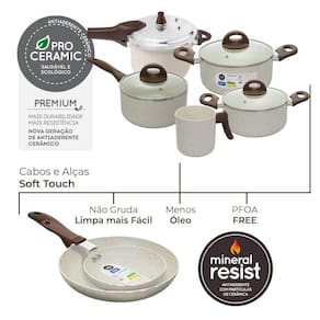 As panelas do conjunto distribuem o calor uniformemente por conta de sua espessura e seu revestimento interno em cerâmica (Pro Ceramic Premium), são antiaderentes classificação A no Inmetro que não deixa os alimentos grudarem, e as Frigideiras têm o revestimento Mineral Resist com partículas de cerâmica ultra resistentes ao uso em altas temperaturas.