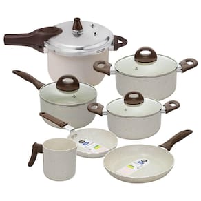 O jogo de panelas possui design inovador, produzida na cor vanilla com cabos marrons, o que com certeza é um diferencial quando estão expostas.