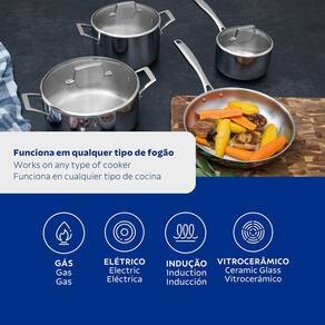 Capacidade da Panela: Caçarola Funda 3,8L, Caçarola Rasa 4,7L, Panela 1,7L, Frigideira 2,2L