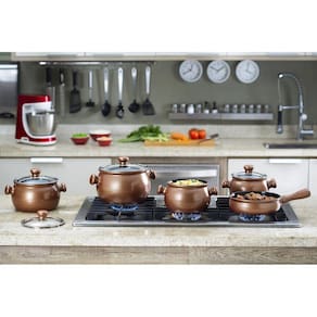 Desenvolvida para atender as necessidades culinárias do cotidiano, a Linha Premiere Joy da Ceraflame é completa e versátil, contando com diversos modelos e tamanhos diferenciados de caçarolas e frigideiras que são fáceis de manusear e limpar. A tampa em vidro permite visualizar os alimentos durante o preparo, enquanto a retenção de calor é superior a outros materiais, proporcionando um desempenho semelhante ao de uma panela de metal em fogo alto e economizando gás ou eletricidade.Com alta funcionalidade, as peças podem ser usadas diretamente no fogão a gás e elétrico, no forno microondas e tradicional, na geladeira e lava-louças. Além disso, a superfície lisa e não porosa das panelas facilita a limpeza e evita a proliferação de bactérias. Em suma, a linha Premiere Joy destaca-se pela sua versatilidade, funcionalidade e qualidade, sendo uma excelente escolha para quem busca praticidade e eficiência na cozinha.Características:Marca: ceraflameCódigo do Fabricante: J603949Linha: premiere JoyCor: cobreMaterial: cerâmicaMaterial das Alças: CerâmicaEspessura: 5mmFogões Compatíveis: Gás e elétricoConteúdo do Jogo: 1 Caçarola 14cm 1.1L, 1 Caçarola 14cm 1.6L, 1 Caçarola 16cm 2.3L, 1 Caçarola 18cm 3L e 1 Frigideira 18cm 1.2LCompatível com Lava-louças: SimMaterial das Tampas: VidroSaída de Vapor: Sim