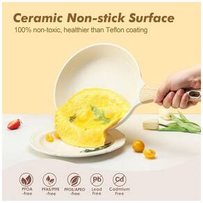 Apresentamos o Conjunto de Panelas de Cerâmica SENSARTE, a escolha saudável para a sua cozinha. Com superfície cerâmica antiaderente 100% não tóxica, livre de PFOA, PTFE, PFAS, PFOS, grafite, cádmio e outras substâncias nocivas. Seu revestimento cerâmico natural é mais saudável que o revestimento de Teflon, resistente a riscos e libera os alimentos com facilidade. Requer menos óleo para cozinhar, promovendo uma dieta saudável e com baixo teor de gordura. O conjunto inclui frigideiras , panela para refogar com tampa, caçarola com tampa, panela com tampa, 2 utensílios multiuso e 4 protetores de panela. Fácil de limpar, basta passar um papel toalha ou enxaguar com água. Compatível com indução e todos os tipos de fogões. O fundo de aço inoxidável permite aquecimento rápido e uniforme, sem deformações. Com alça StayCool e tampa de vidro resistente a explosões para cozinhar com tranquilidade.
