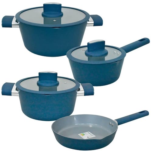 Conjunto com 4 Panelas de Indução Chicago Azul Alumínio com Revestimento Cerâmico - Casambiente
