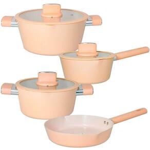 Conjunto com 4 Panelas de Indução Chicago Bege Alumínio com Revestimento Cerâmico - Casambiente