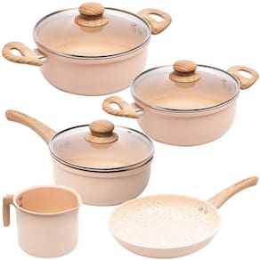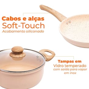 Conjunto 5 Panelas de Indução Granito Chef Bege Alumínio com Revestimento Cerâmico - Lyor