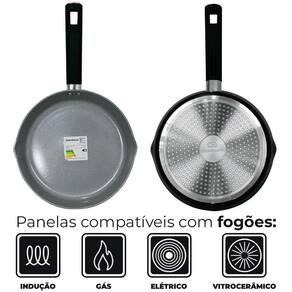 Conjunto com 4 Panelas de Indução Chicago Preto Alumínio com Revestimento Cerâmico - Casambiente