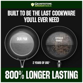 GRANITESTONE ARMOR MAX: Cada peça de panela Granitestone Armor Max é construída para durar a vida toda e, ao mesmo tempo, fornecer a melhor experiência antiaderente já produzida pela Granitestone. O exterior resistente, forjado e anodizado rígido combinado com um interior antiaderente de 4 camadas garante que você tenha as melhores panelas antiaderentes do por muitos anos.