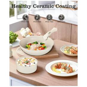 Durabilidade e Desempenho de Longa Duração: Fabricado com revestimento cerâmico de alta qualidade, este conjunto oferece resistência e durabilidade superior. Com garantia vitalícia, você pode confiar que ele permanecerá em excelente estado por muitos anos. Design Elegante em Branco Creme: Disponível em uma sofisticada cor branca creme, este conjunto combina estilo e funcionalidade. Ele adiciona um toque de elegância à sua cozinha, elevando sua experiência culinária com um visual moderno e atemporal. Transforme sua cozinha com um conjunto que une praticidade, durabilidade e estilo!