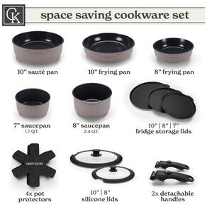 Organização Perfeita: Com nosso conjunto de utensílios de cozinha empilháveis e alça removível, você poderá organizar seus armários de forma eficiente, sem abrir mão dos itens essenciais para o preparo das suas receitas. Versatilidade Máxima: As alças removíveis garantem total flexibilidade, permitindo que você transfira os utensílios com facilidade entre o fogão, o forno, a mesa e a geladeira. Revestimento Antiaderente de Granito Seguro e Exclusivo: Nossa tecnologia patenteada oferece um revestimento antiaderente de granito livre de substâncias químicas prejudiciais, como PFOS e PFOA, proporcionando segurança e durabilidade no uso diário. Resistência ao Forno: Os utensílios podem ser levados ao forno em temperaturas de até 250°C, ampliando suas possibilidades na cozinha, seja para assar ou gratinar, e facilitando a limpeza.
