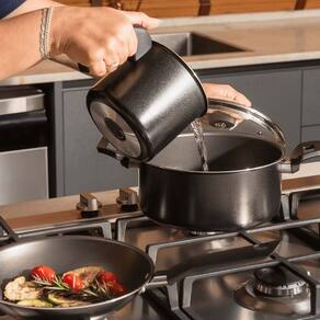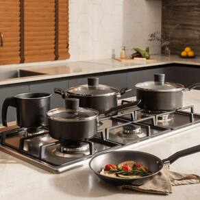 Cozinhe com mais estilo, praticidade e segurança com o Jogo de Panelas Brinox Pro-Flon 5 Peças Ebony!