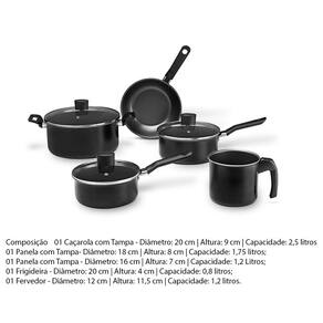 Jogo de Panelas Ebony Preto Antiaderente Pro-Flon 5 Peças - Brinox 7190/400