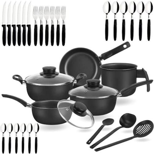 Jogo De Panelas Elegan 33 Peças Com Talheres - Preto
