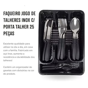 Surpreenda seus convidados com o faqueiro de inox que une elegância e qualidade em cada detalhe. Composto por talheres resistentes e duráveis, este conjunto completo é ideal para enriquecer suas refeições diárias ou ocasiões especiais. Seja no churrasco de domingo ou em jantares sofisticados, este faqueiro premium é perfeito para impressionar.