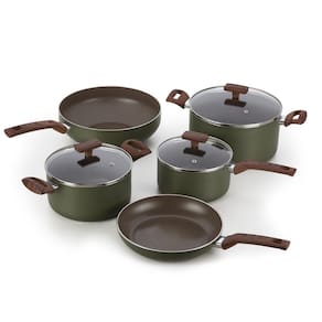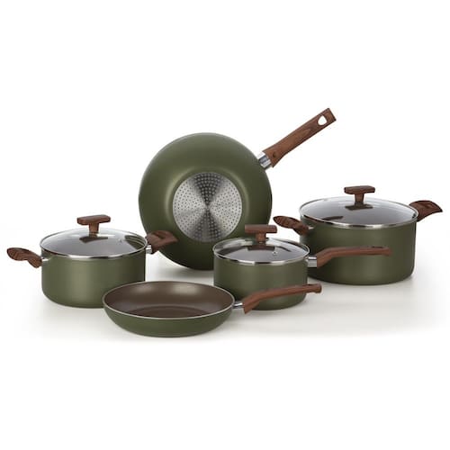 Jogo de Panelas Eté Indução 5 Peças Verde Oliva em Alumínio com Revestimento Interno Antiaderente Multiflon - Na sua casa!