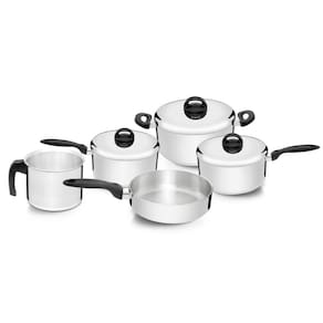 Torne o preparo das suas refeições mais prático e eficiente com o jogo de panelas Eterna da Nigro! Composto por 5 peças em alumínio, ele conta com os cabos, alças e pegadores antitérmicos, oferecendo mais segurança no manuseio. A parte interna das panelas é em alumínio escovado. São de fácil limpeza ainda podem ir direto à lava-louças. Em função do alumínio ter a espessura de 3mm, ela cozinha e mantém os alimentos quentes por mais tempo, economizando gás. Mais praticidade para o seu dia a dia na cozinha!