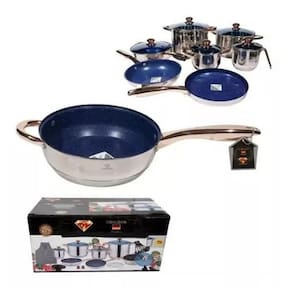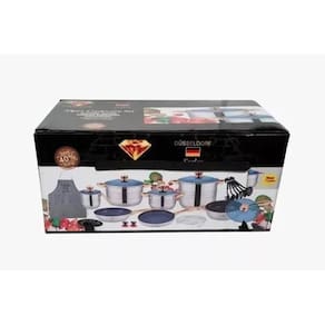 - 23 peças - 9 camadas de cerâmica em aço cirúrgico 18/10 gramatura termostato - 2 Frigideiras - 4 Panelas - 1 Fritadeira - 5 Tampas - 6 Colheres - 1 Grade de fritadeira - 1 Avental - 2 Dois puxador - 1 Porta panela