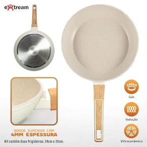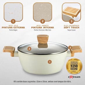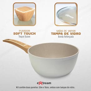 Jogo de Panelas Alphaville Marmol Vulkano Extream - Tecnologia UltraShield Nano Ceramic e Compatibilidade com Fogão de InduçãoTransforme sua cozinha com o Kit de Panelas Alphaville Marmol Vulkano Extream, desenvolvido para quem busca qualidade, durabilidade e inovação. Com um design moderno na cor Marmol Vulkano, este conjunto de 11 peças oferece tudo o que você precisa para um cozimento eficiente e prático.Funciona em TODOS os Tipos de Fogões, incluindo InduçãoGraças à sua base especial, este kit é totalmente compatível com fogões de indução, além de funcionar perfeitamente em fogões a gás, elétricos e vitrocerâmicos.Destaques do Produto:- Revestimento UltraShield Nano Ceramic Antiaderente - Tecnologia cerâmica avançada que impede que os alimentos grudem, proporcionando um cozimento mais saudável e facilitando a limpeza.- Alumínio Forjado de Alta Performance - Distribui o calor de maneira uniforme, garantindo um cozimento rápido e eficiente.- Kit Completo com 11 Peças - Inclui frigideiras, caçarolas, panelas, leiteira e utensílios essenciais para qualquer cozinha.- Durabilidade Extrema - Construído para resistir ao uso diário sem perder eficiência e beleza.- Design Sofisticado - A cor Marmol Vulkano traz um toque elegante e moderno para a sua cozinha.Itens Inclusos no Kit:1 Frigideira 20cm1 Frigideira 24cm1 Leiteira 14cm alumínio prensado 1 Panela 18cm1 Panela 20cm1 Caçarola 20cm1 Caçarola 22cm4 utensílios de cozinhaAposte na inovação da linha Marmol Vulkano e leve mais tecnologia para sua cozinha Marca: Não Informado Ean: 7898946069297