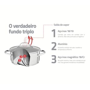 O que vem na caixa: 1 Caçarola funda Ø 20cm 1 Caçarola Ø 24cm 1 Panela Ø 16cm